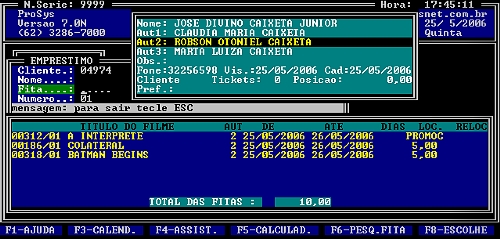 Tela de empréstimos, observe que uma locação